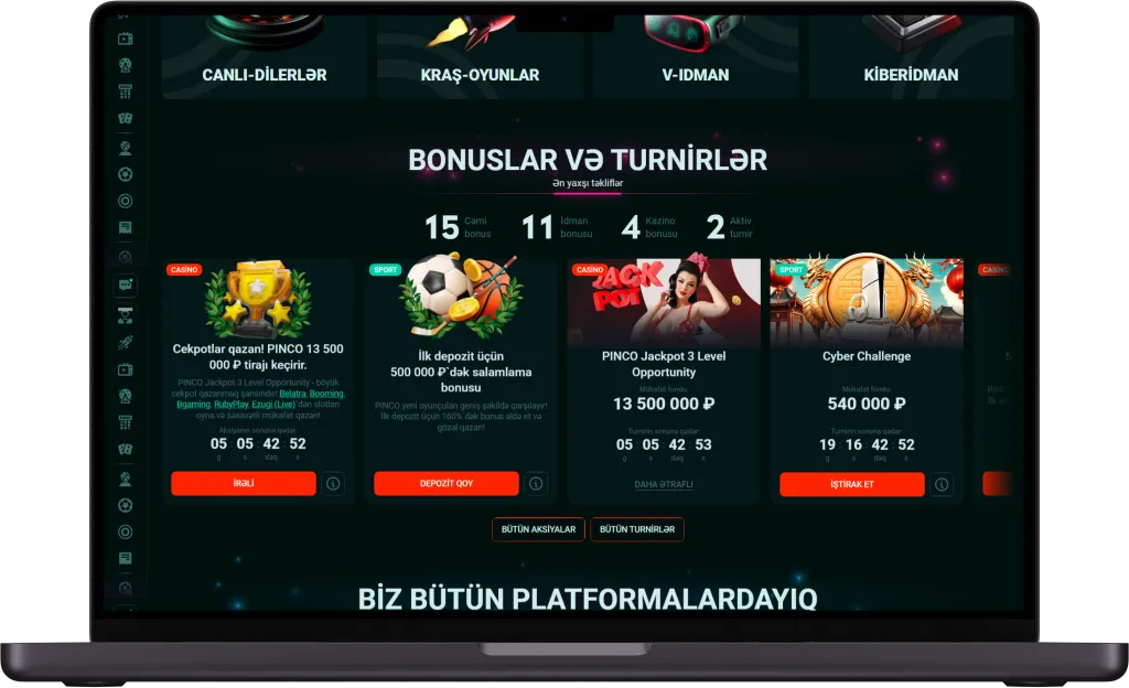 - Depozitsiz bonuslar nadirdir. Pinco Azerbaijan adətən bunları yeni oyunçulara verifikasiya sonrası təklif edir.